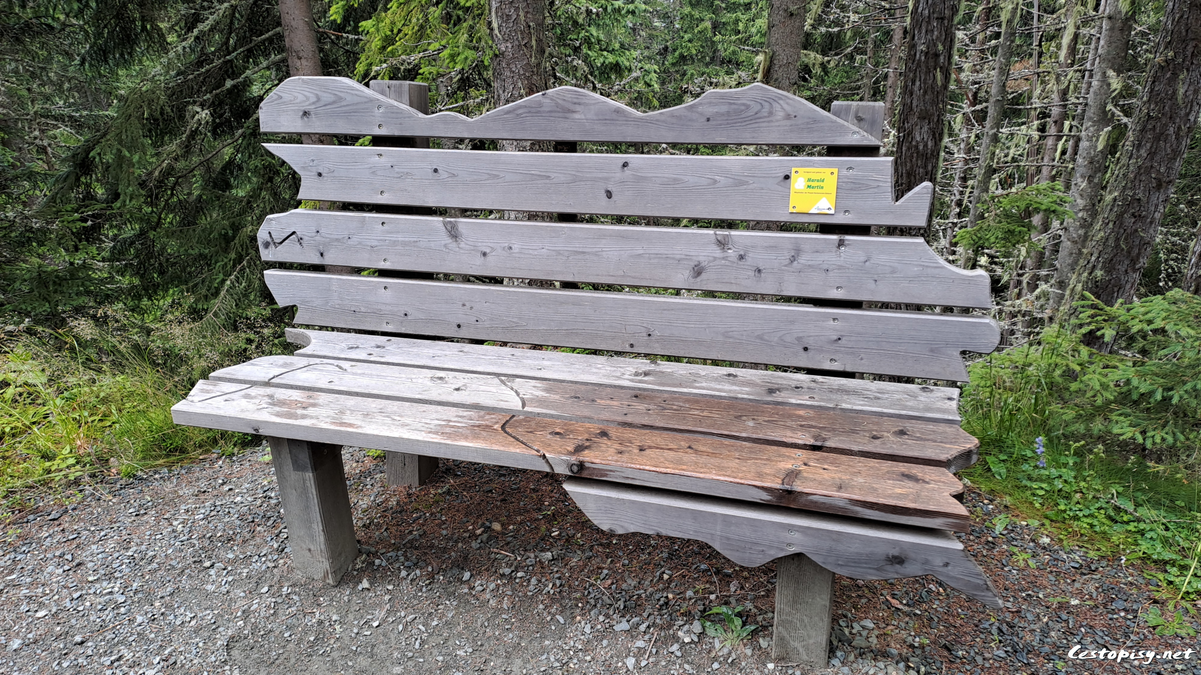 Na trase dlouhé zhruba 2,5 km objevíte zhruba 20 originálních a neobvyklých laviček, jako je například lavička pro zamilované nebo rodinná lavička, které zvou k posezení uprostřed přírody. Mnohé z laviček navrhli a postavili zaměstnanci zdejší lanovky. Kreativitě se meze nekladly, což je vidět na výsledku neobvyklých možností sezení. Cestou můžete také obdivovat ručně vyřezávané sochy zvířat v životní velikosti.